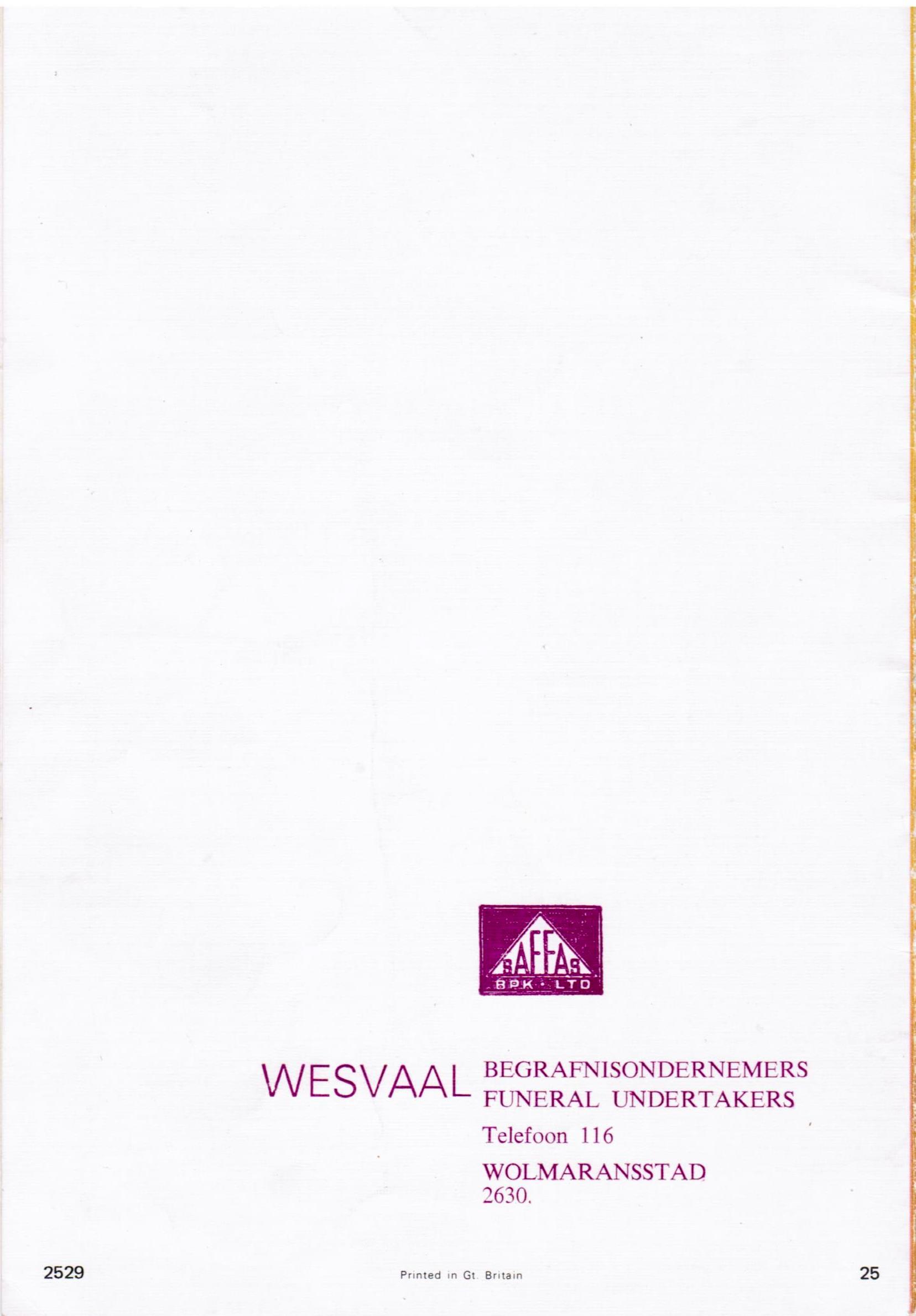Funeral Programs / Begrafnisbriewe
