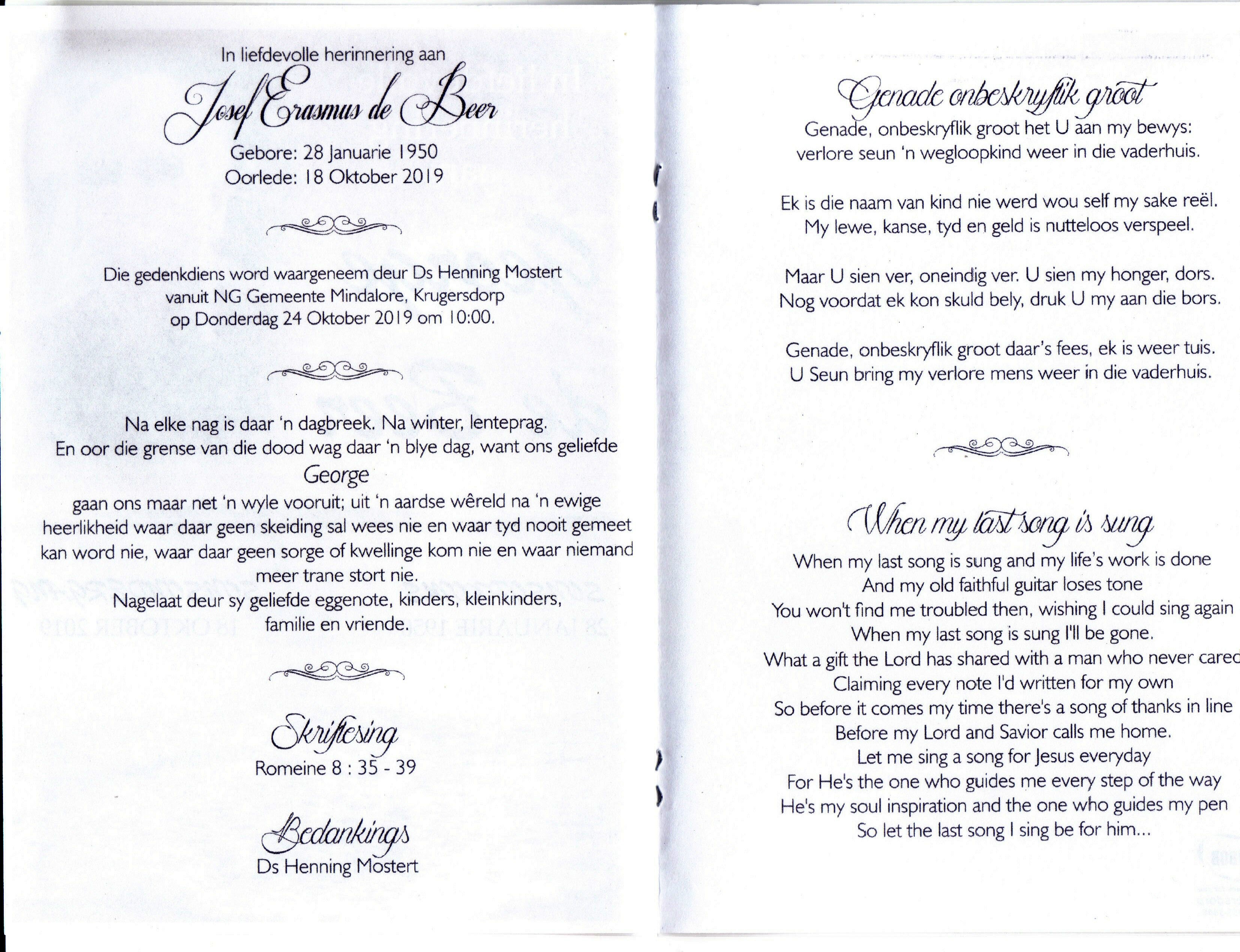 Funeral Programs / Begrafnisbriewe
