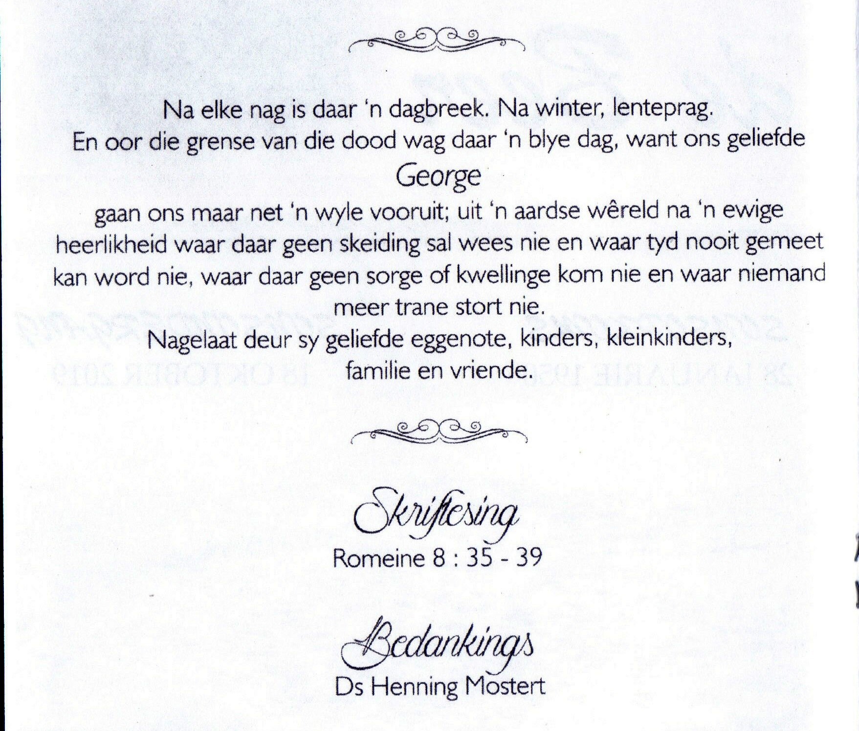 Funeral Programs / Begrafnisbriewe