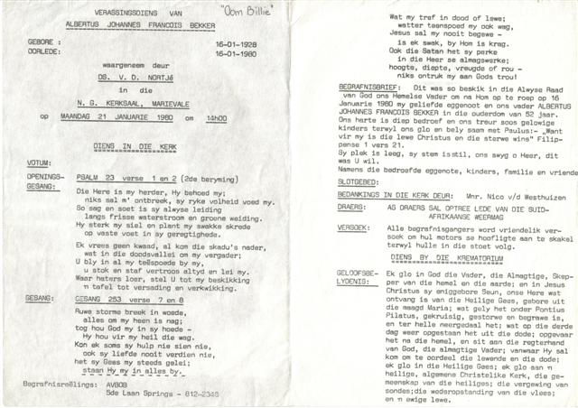 Funeral Programs / Begrafnisbriewe