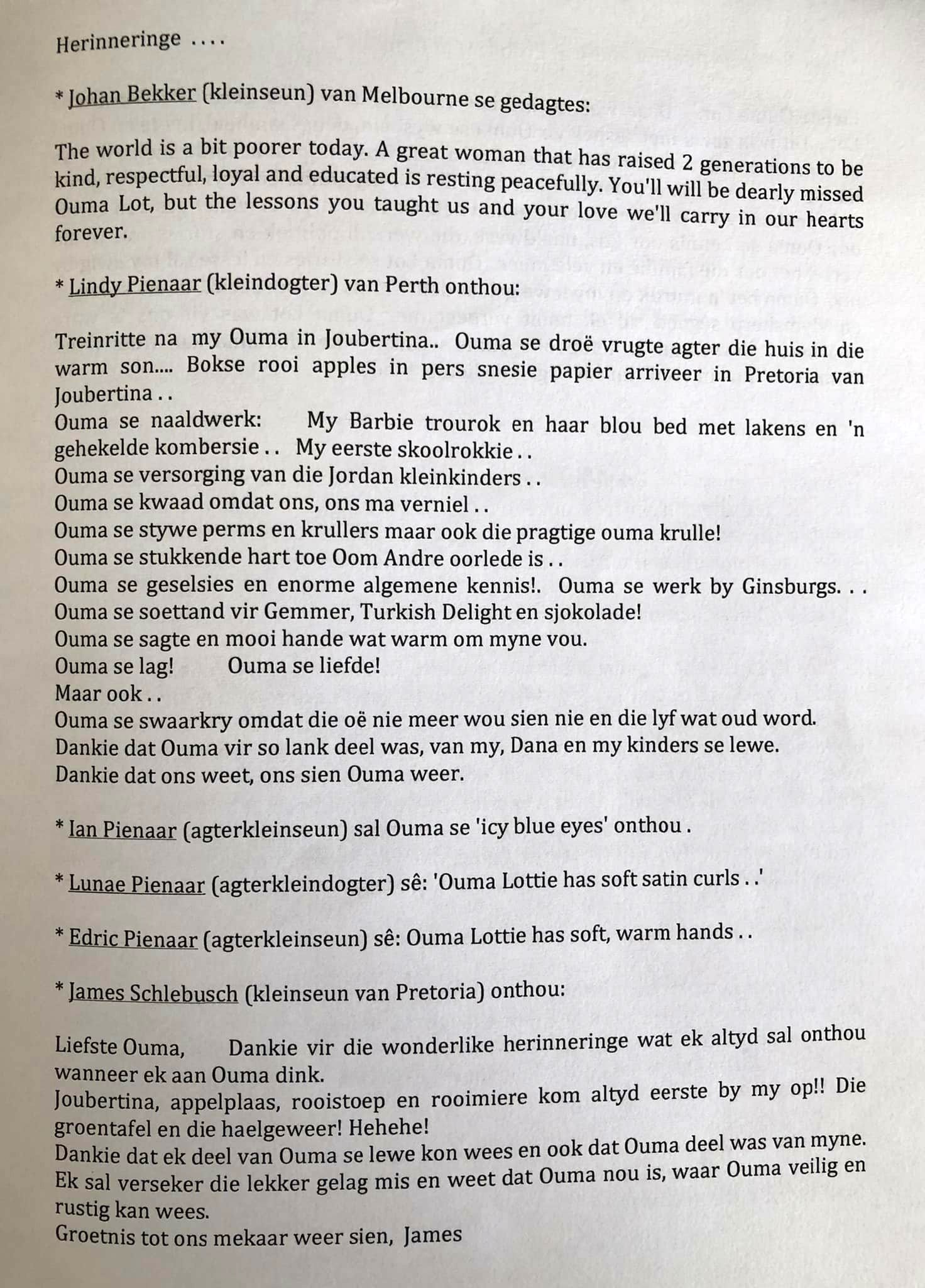 Funeral Programs / Begrafnisbriewe