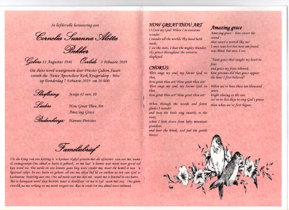 Funeral Programs / Begrafnisbriewe