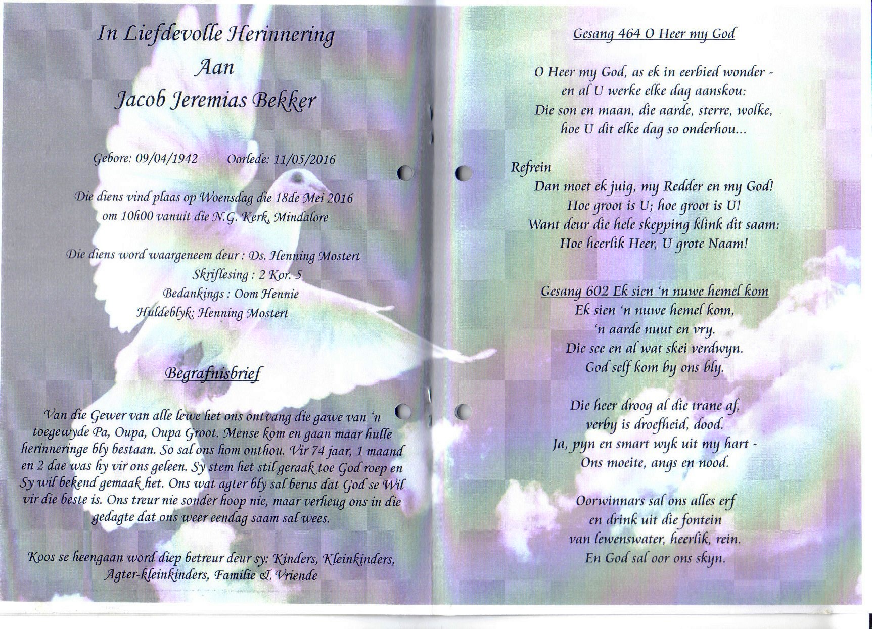 Funeral Programs / Begrafnisbriewe