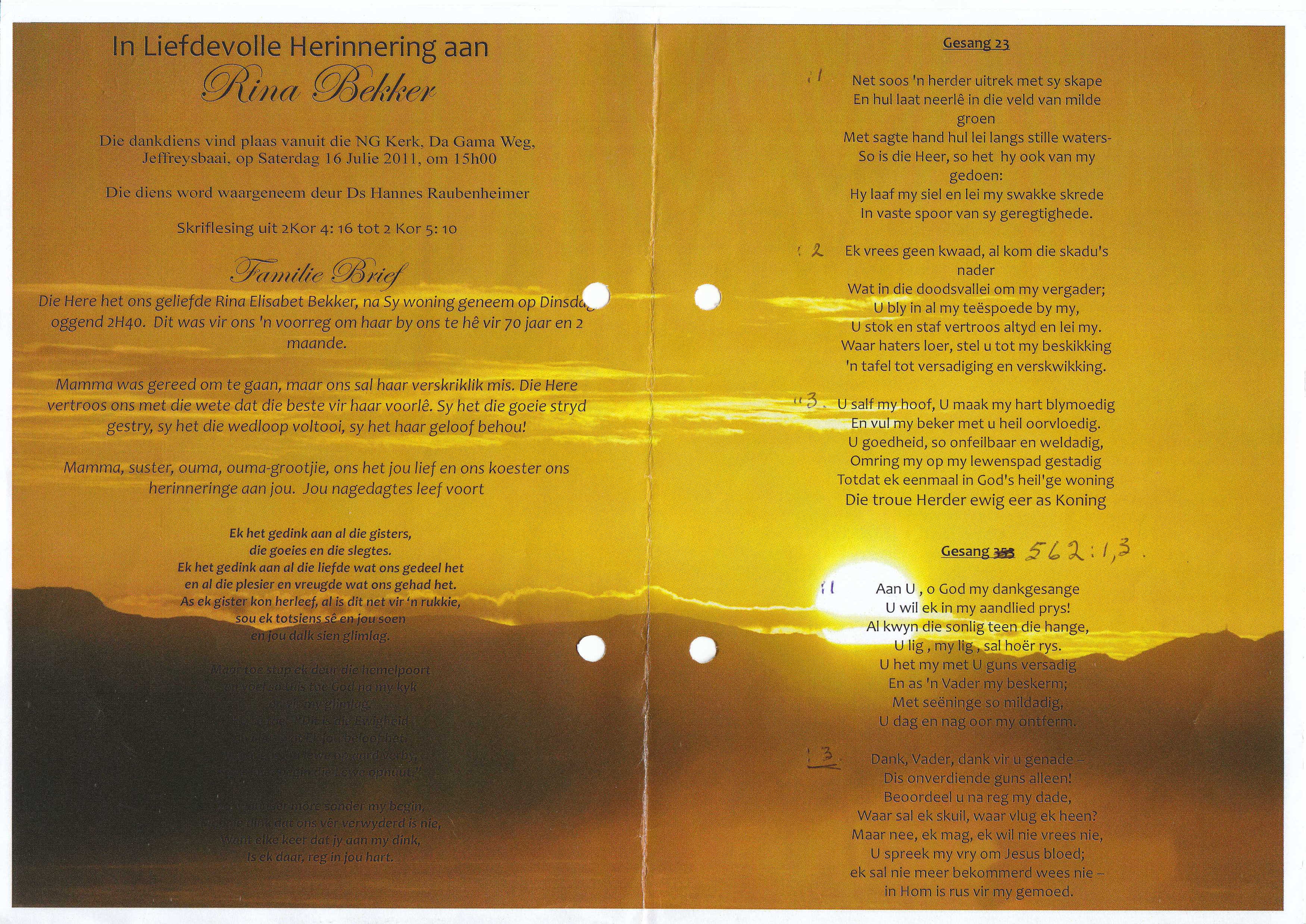Funeral Programs / Begrafnisbriewe