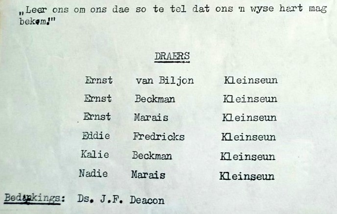Funeral Programs / Begrafnisbriewe