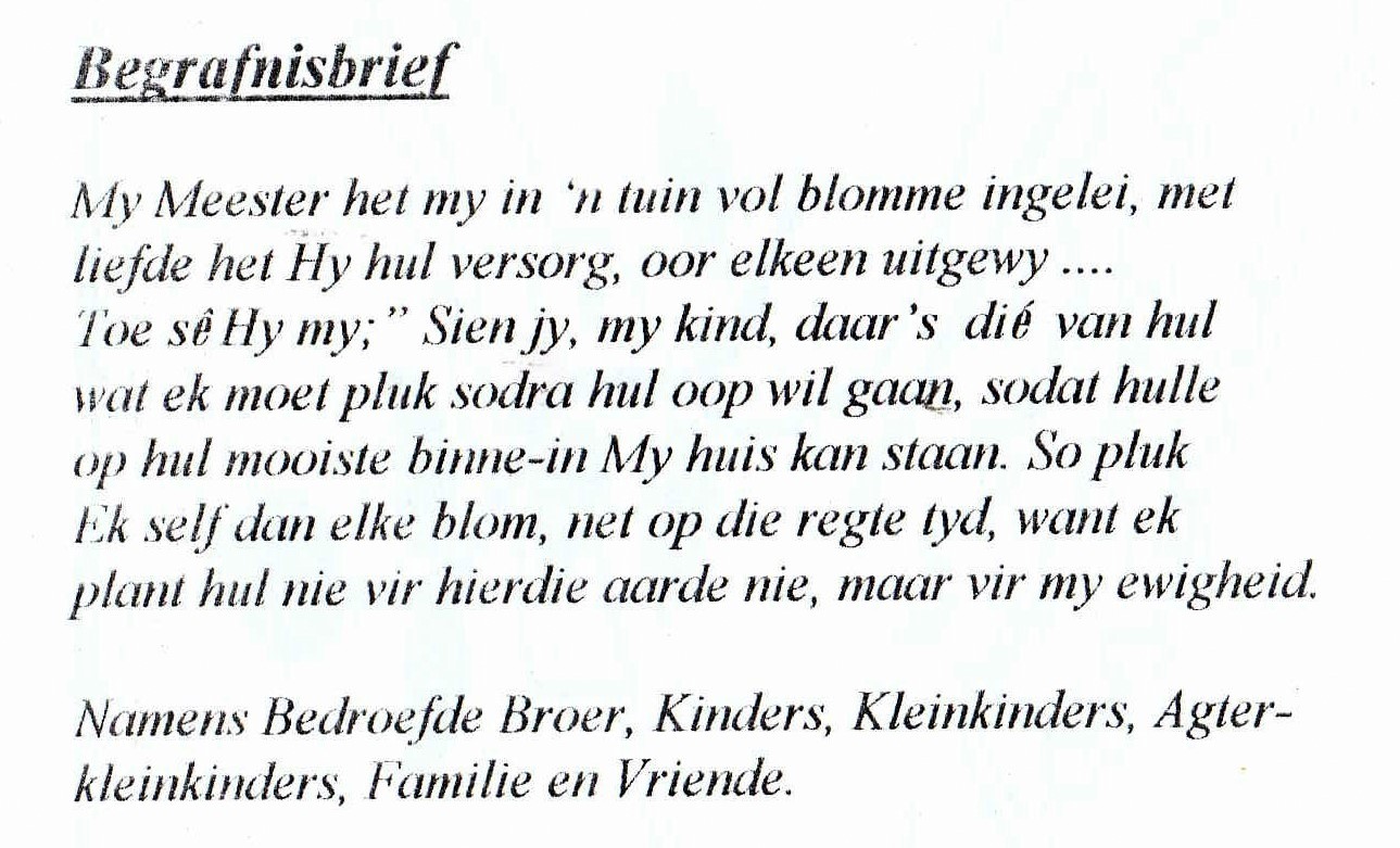 Funeral Programs / Begrafnisbriewe