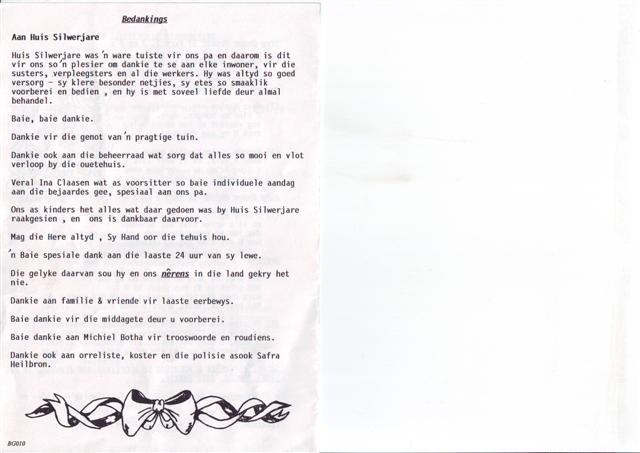 Funeral Programs / Begrafnisbriewe