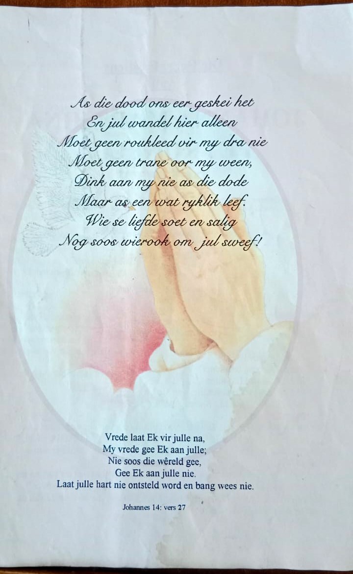 Funeral Programs / Begrafnisbriewe
