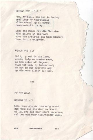 Funeral Programs / Begrafnisbriewe