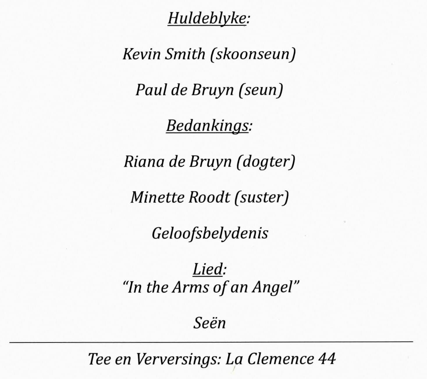 Funeral Programs / Begrafnisbriewe