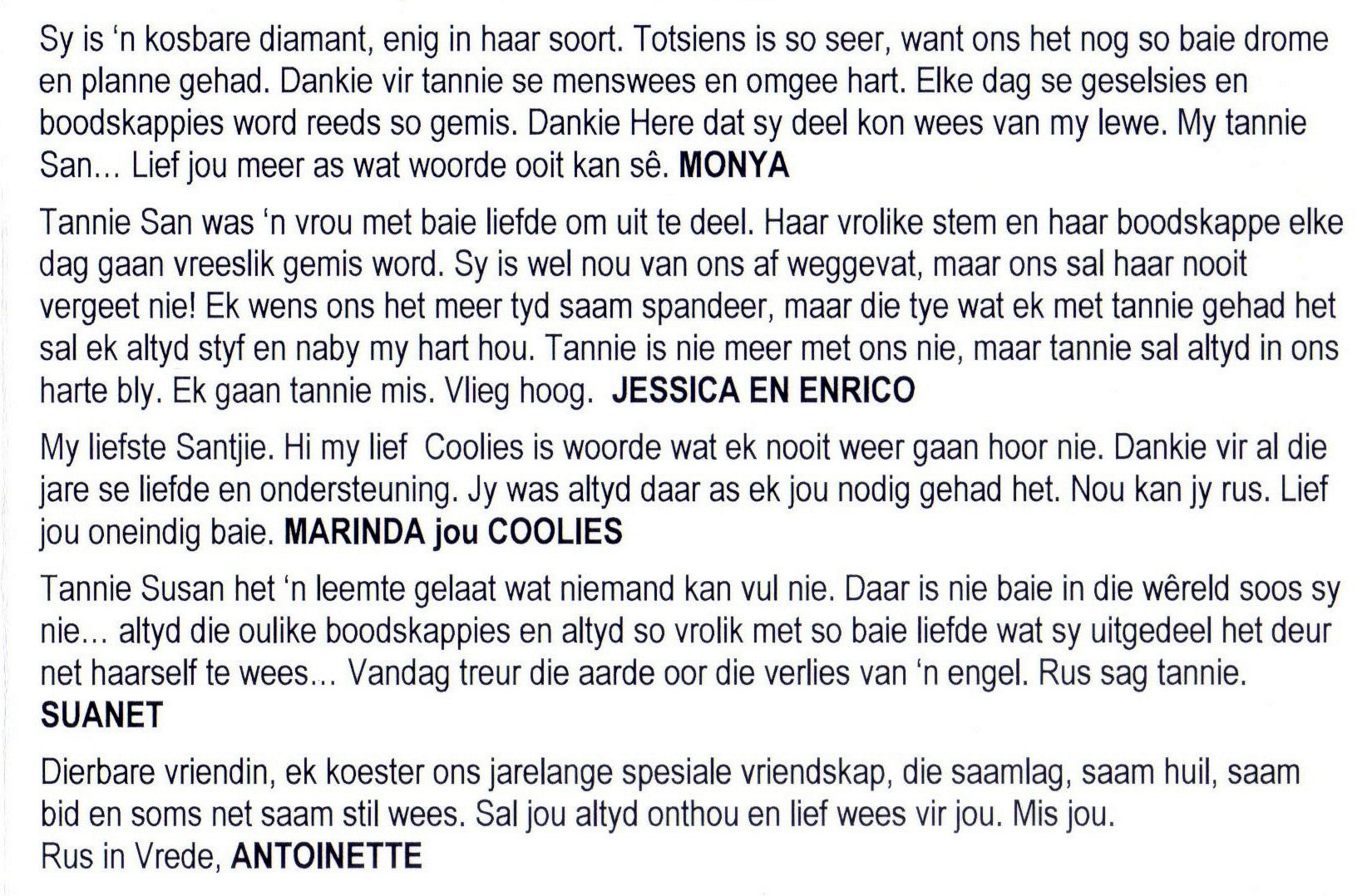 Funeral Programs / Begrafnisbriewe