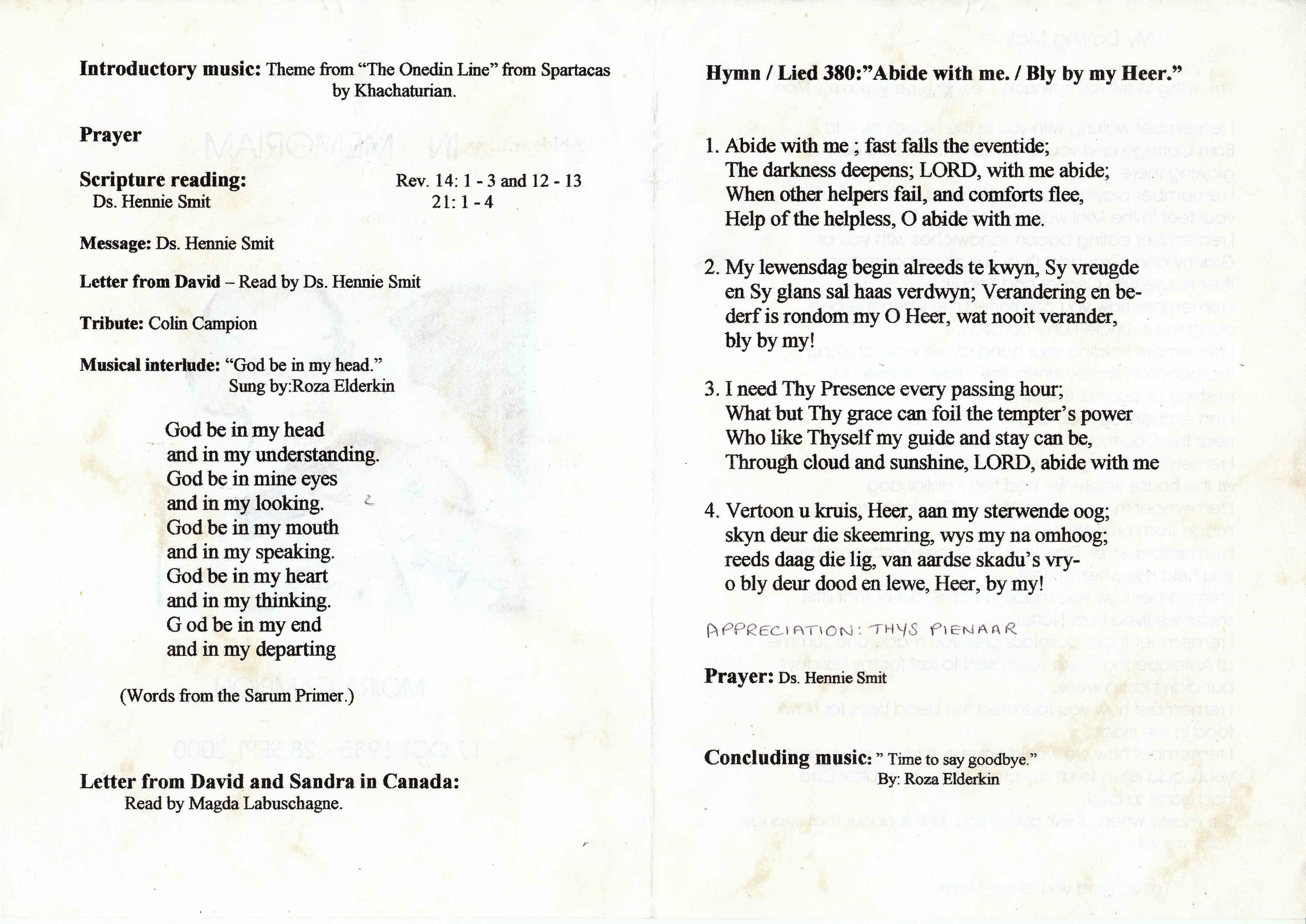 Funeral Programs / Begrafnisbriewe