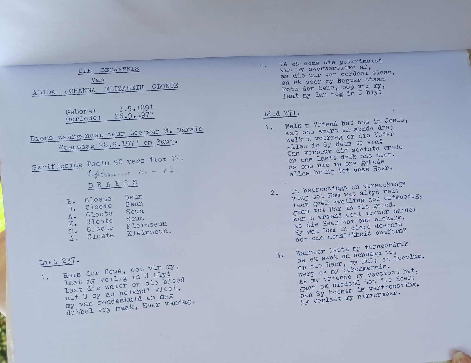 Funeral Programs / Begrafnisbriewe