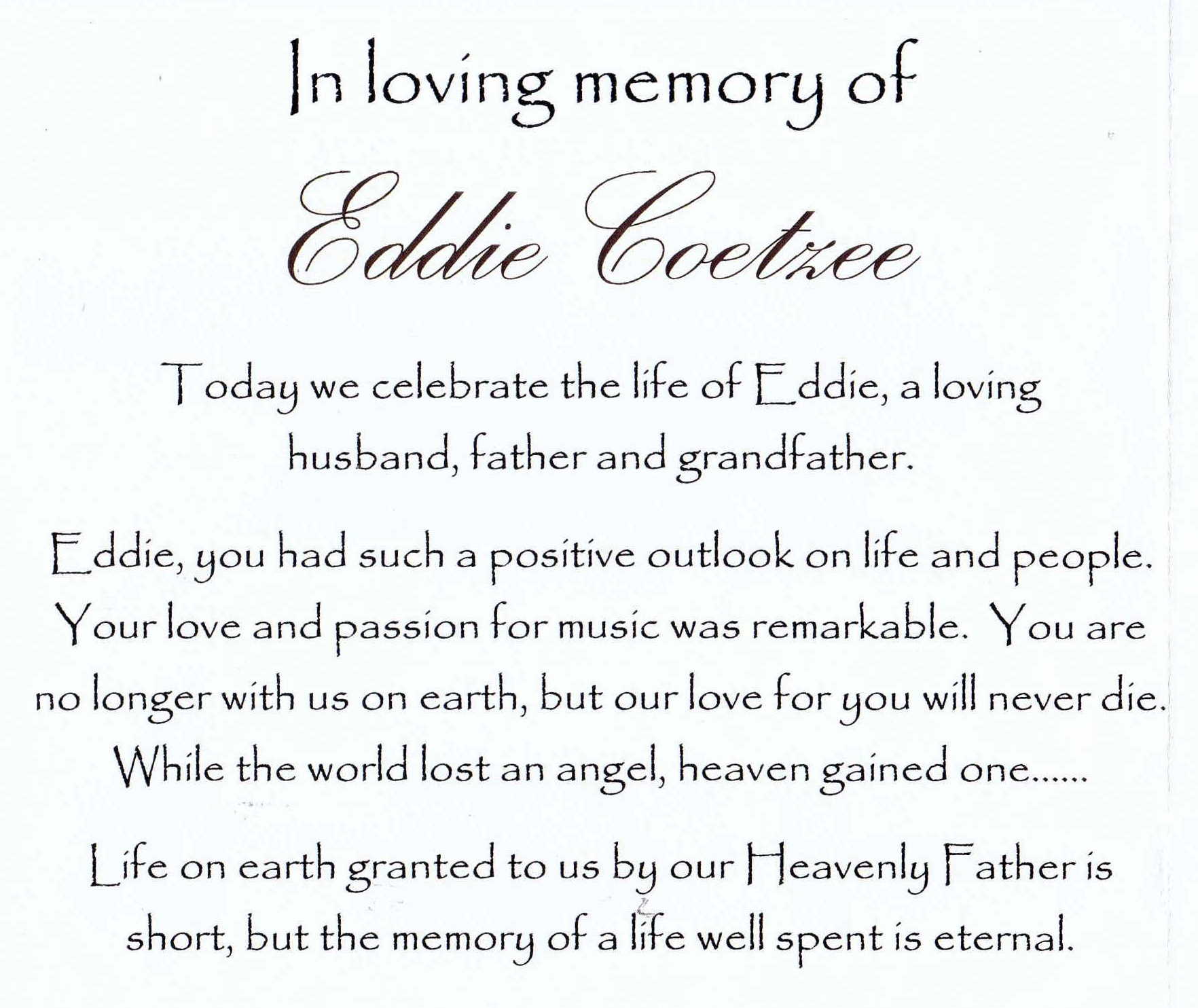 Funeral Programs / Begrafnisbriewe