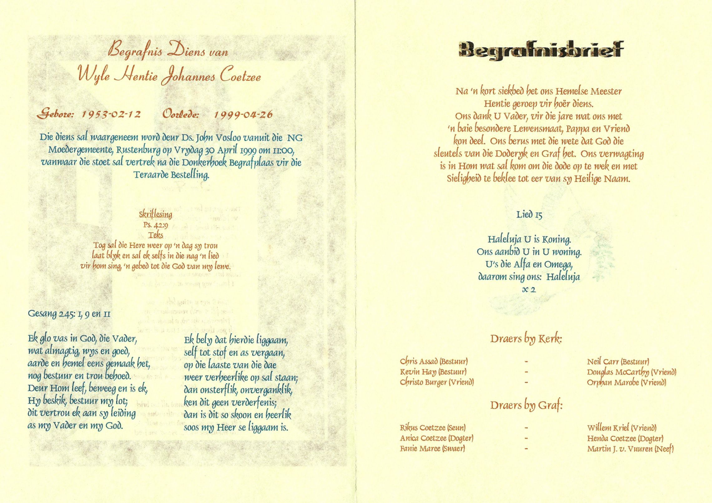 COETZEE-Hentie-Johannes-1953-1999-M