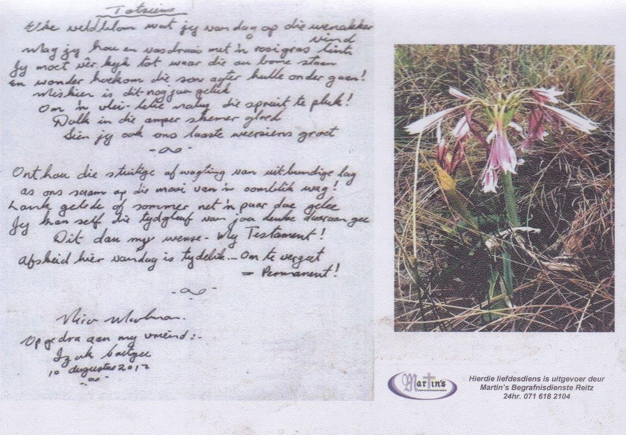 Funeral Programs / Begrafnisbriewe
