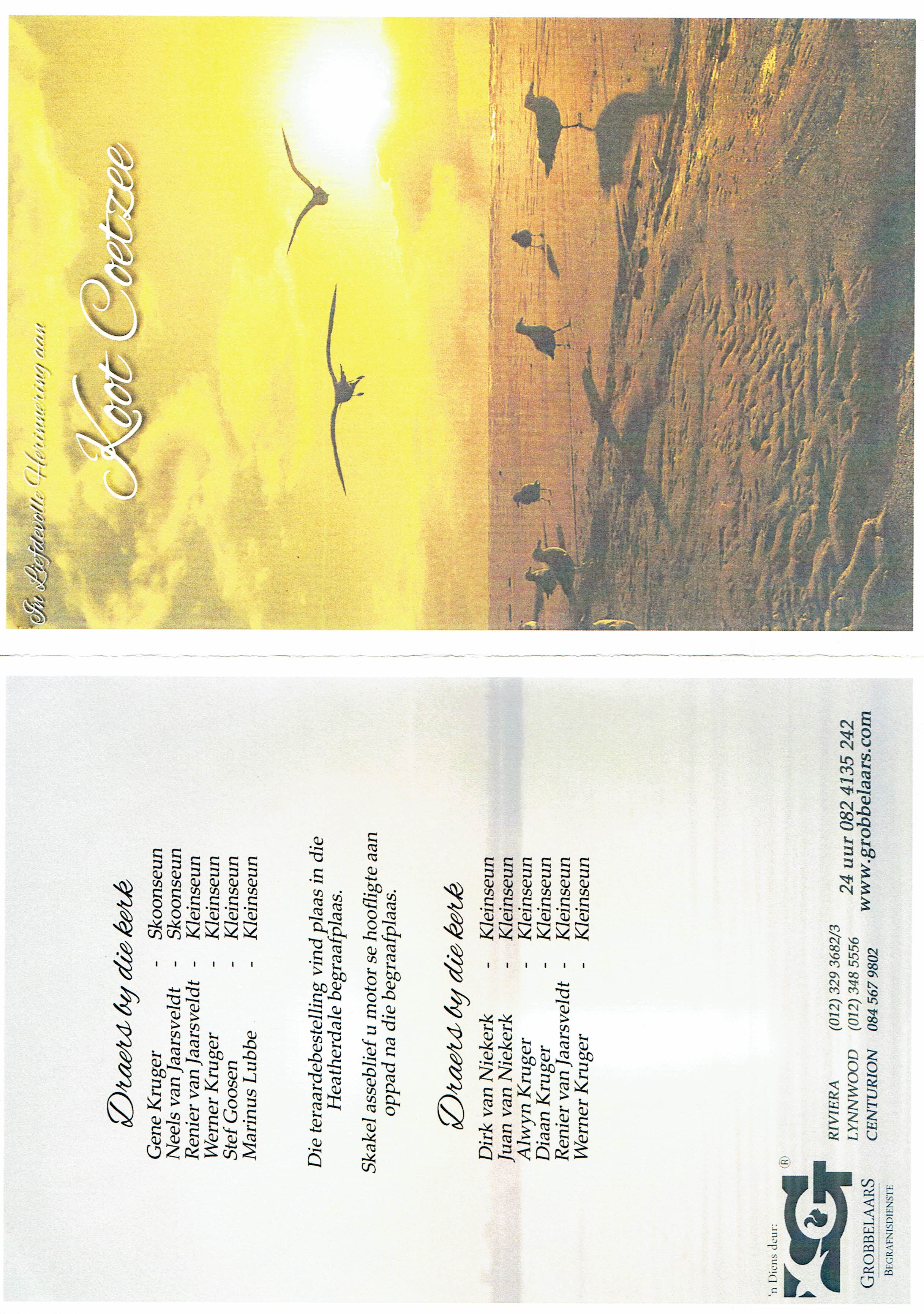 Funeral Programs / Begrafnisbriewe