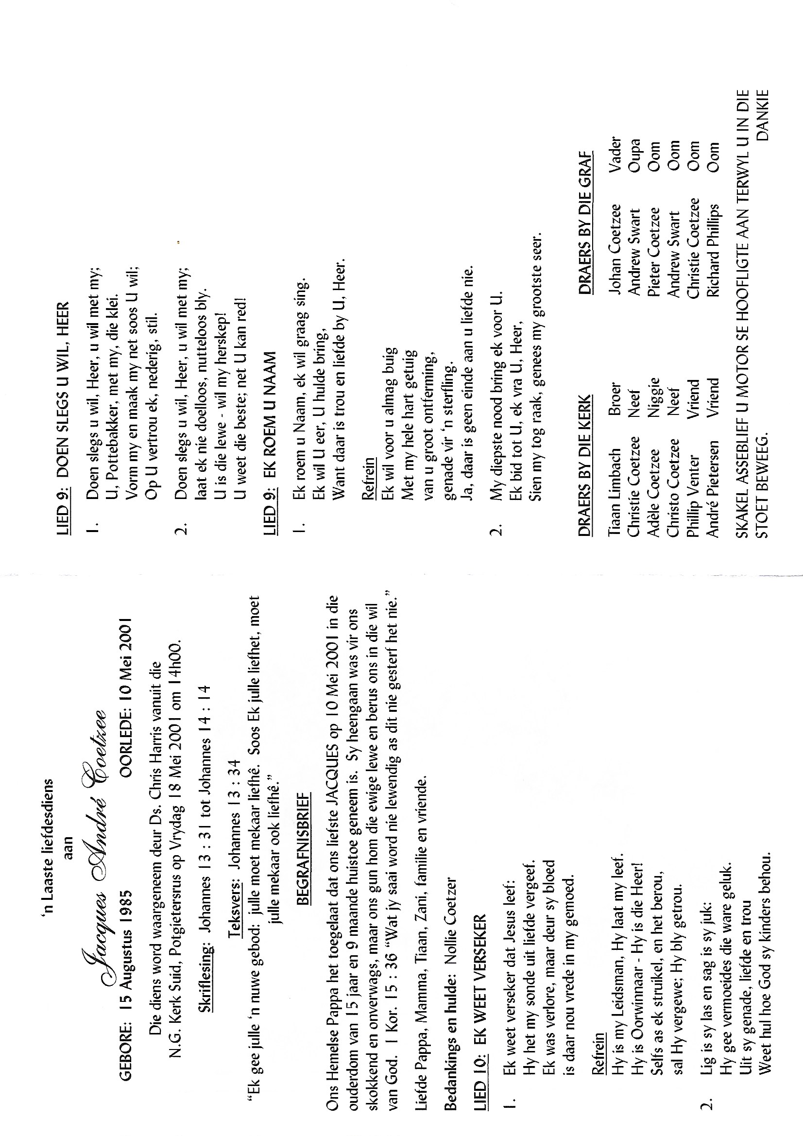 Funeral Programs / Begrafnisbriewe