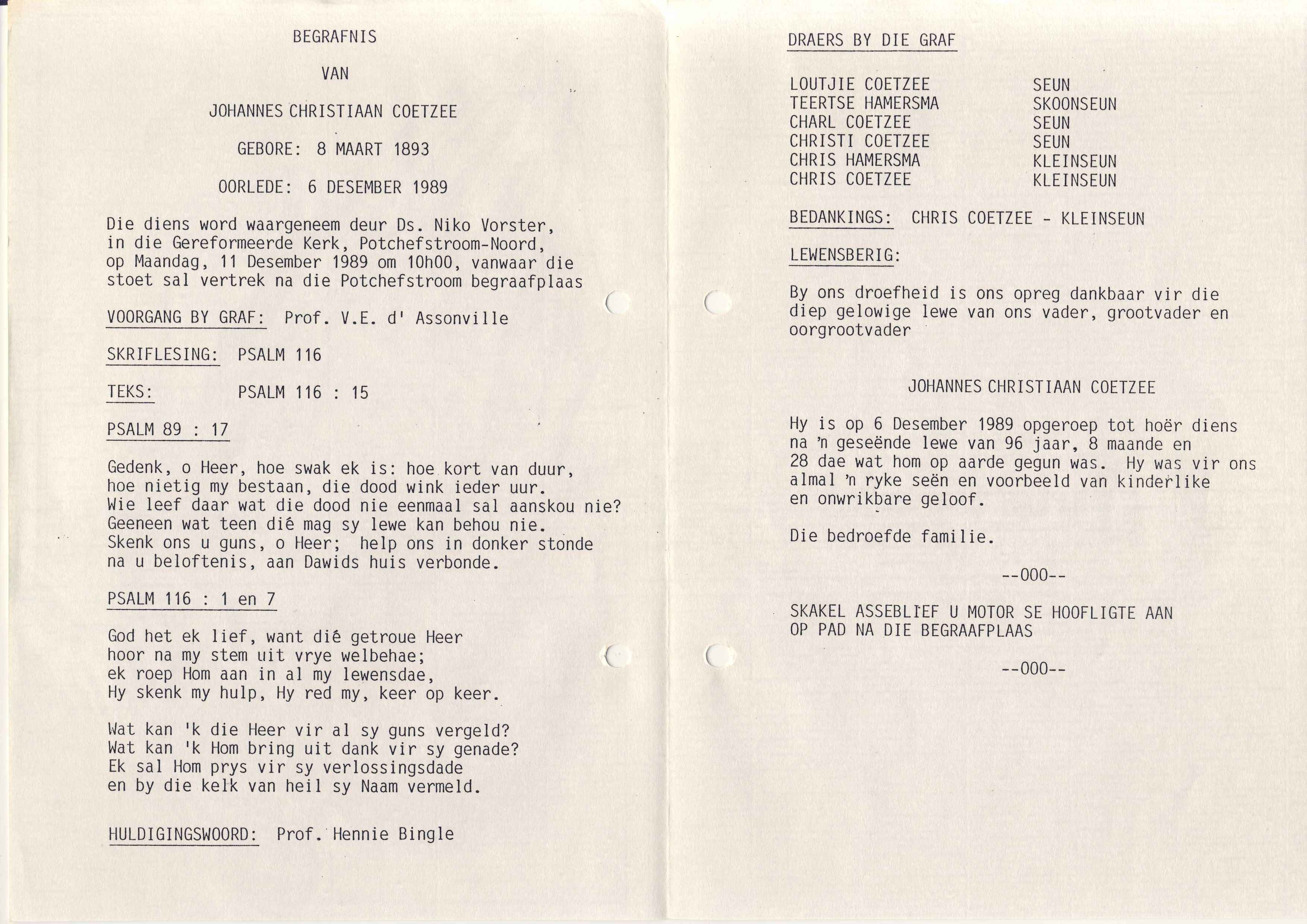 Funeral Programs / Begrafnisbriewe