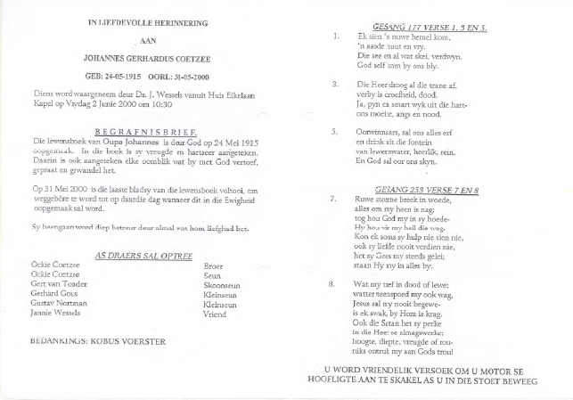 Funeral Programs / Begrafnisbriewe