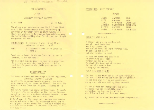 Funeral Programs / Begrafnisbriewe