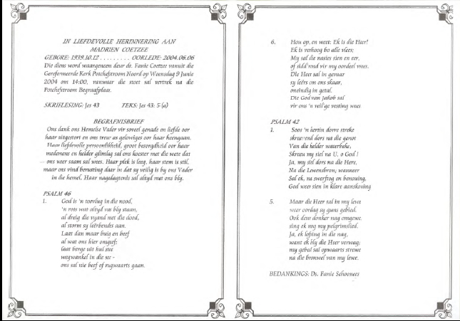 Funeral Programs / Begrafnisbriewe