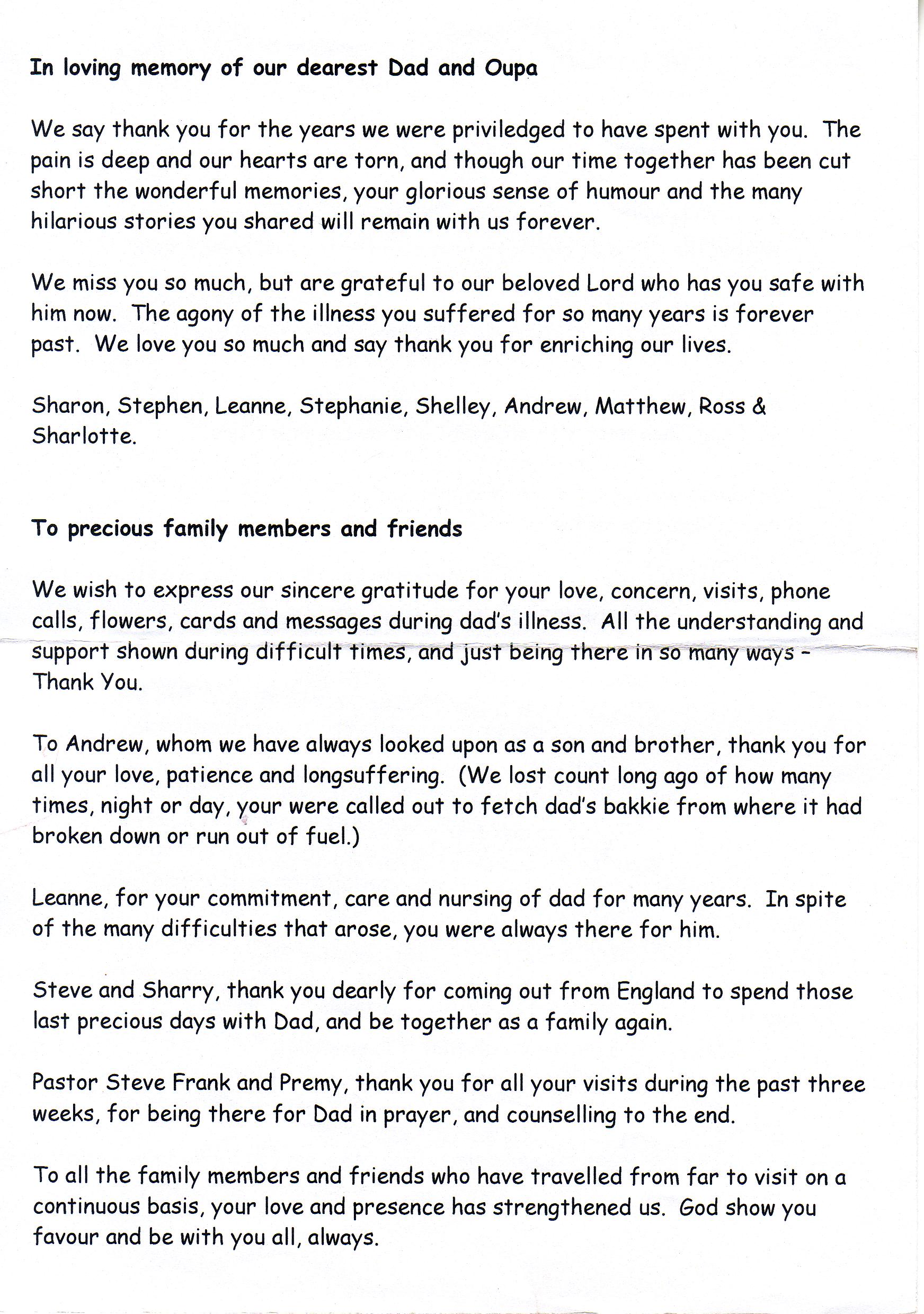 Funeral Programs / Begrafnisbriewe