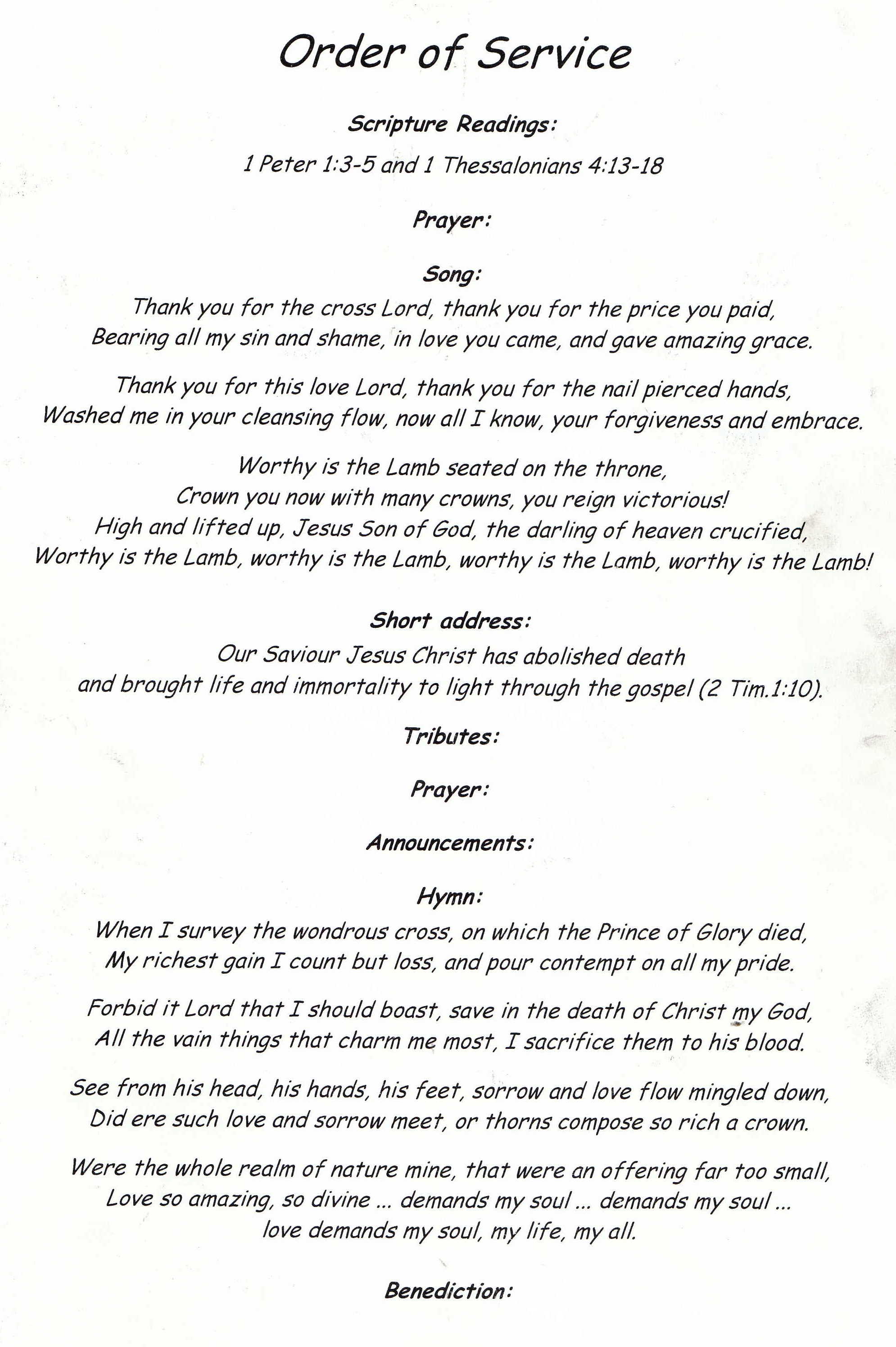 Funeral Programs / Begrafnisbriewe