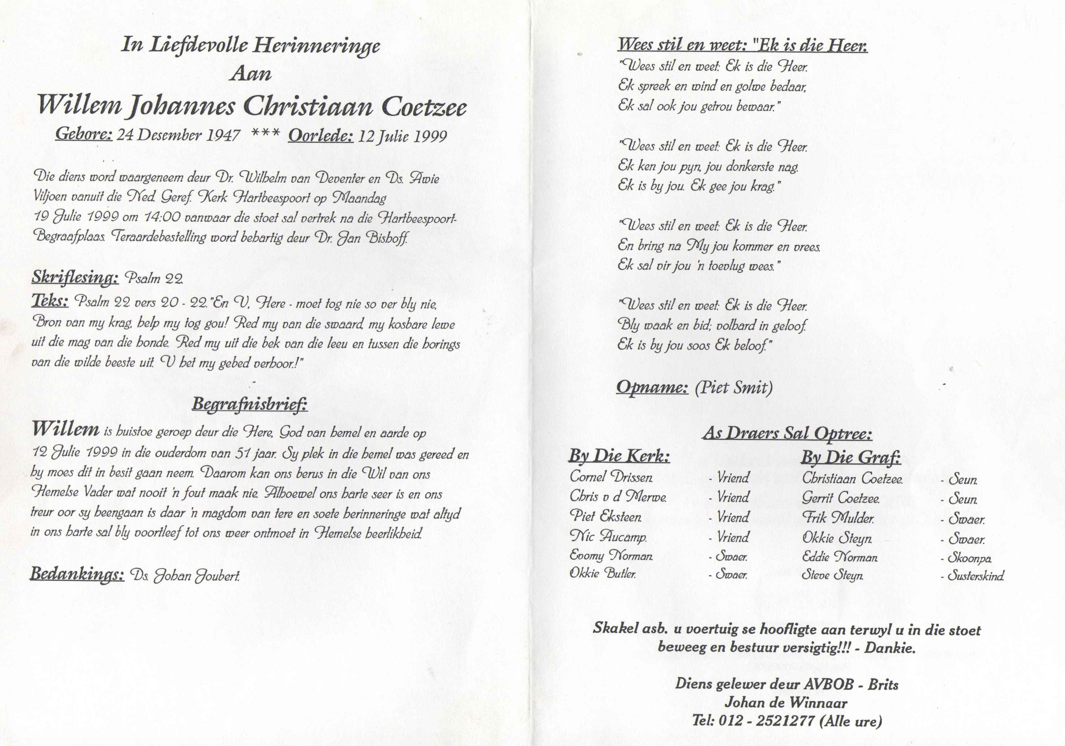 COETZEE-Willem-Johannes-Christiaan-1947-1999-M