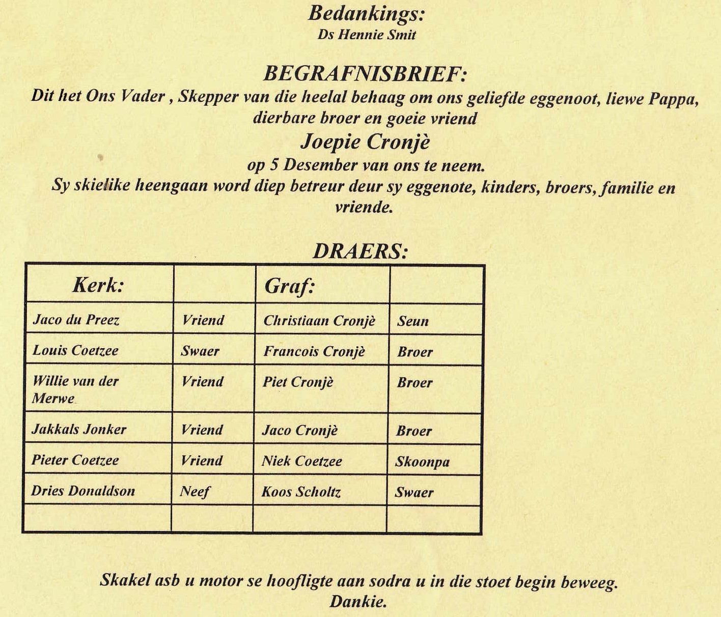 Funeral Programs / Begrafnisbriewe