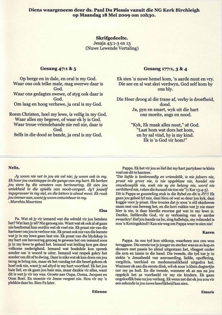Funeral Programs / Begrafnisbriewe