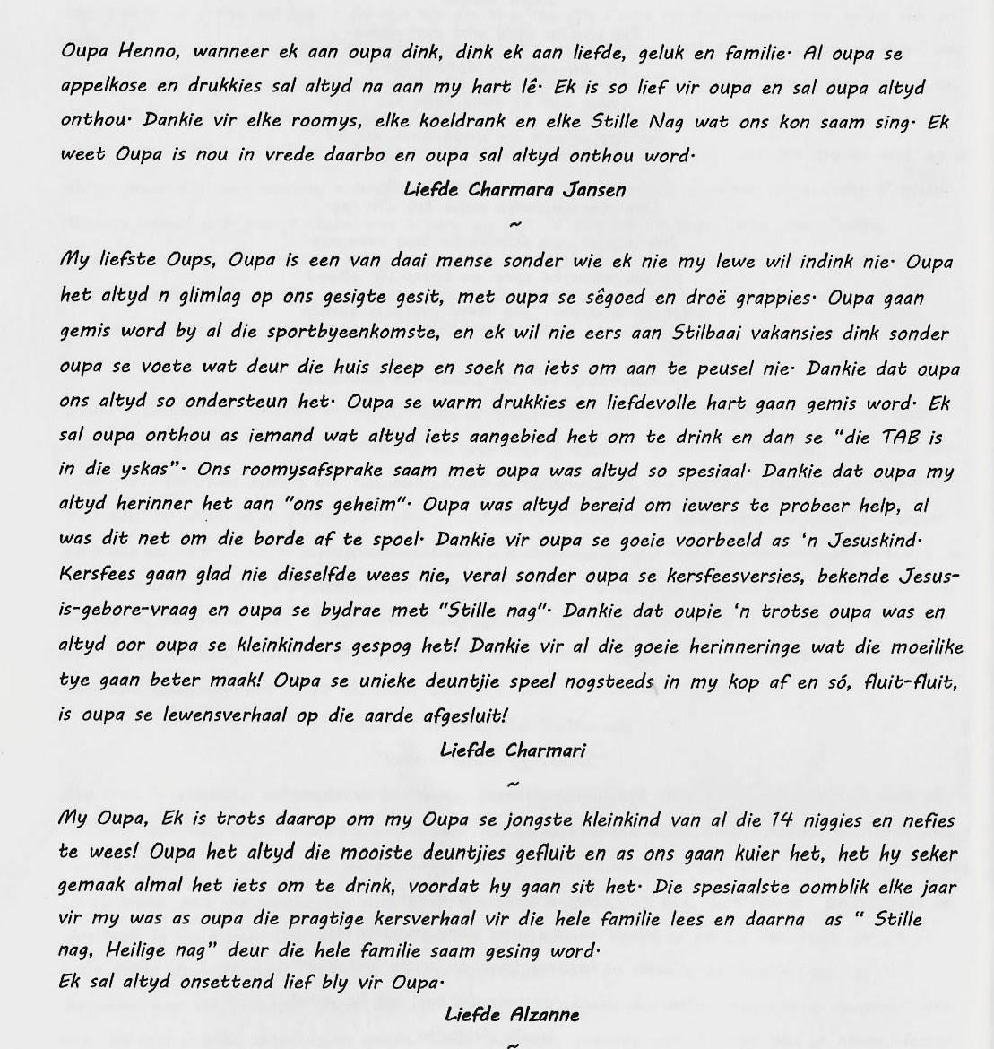 Funeral Programs / Begrafnisbriewe