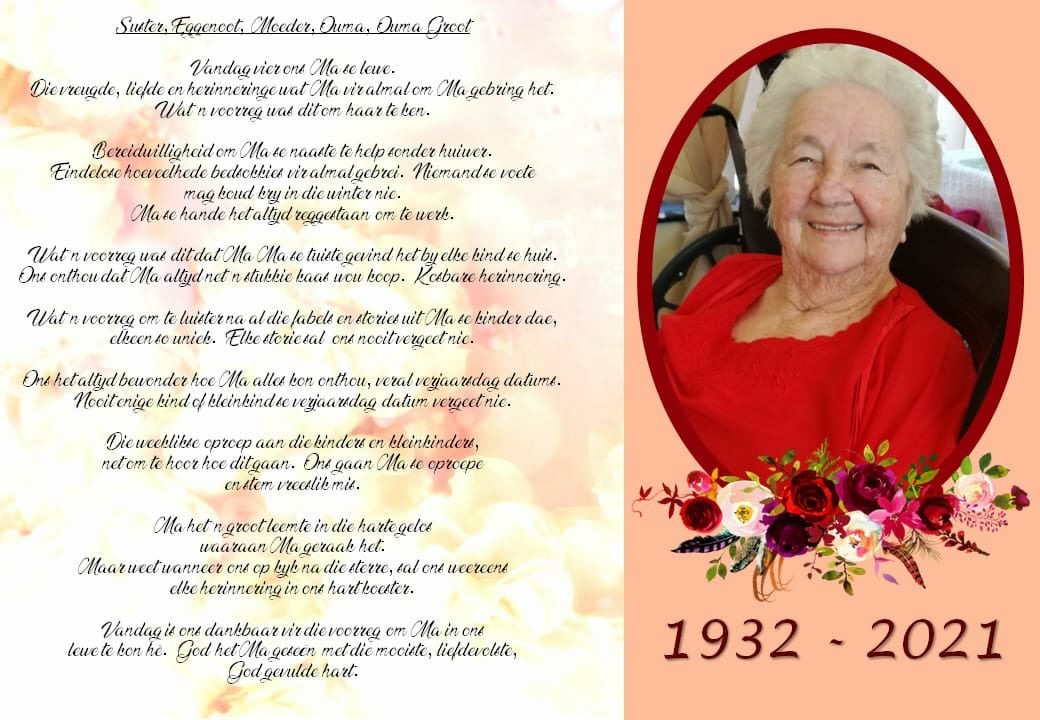 Funeral Programs / Begrafnisbriewe