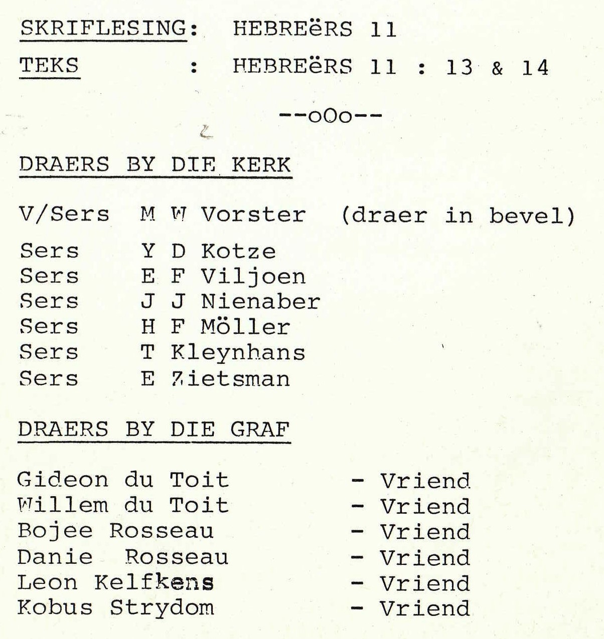 Funeral Programs / Begrafnisbriewe