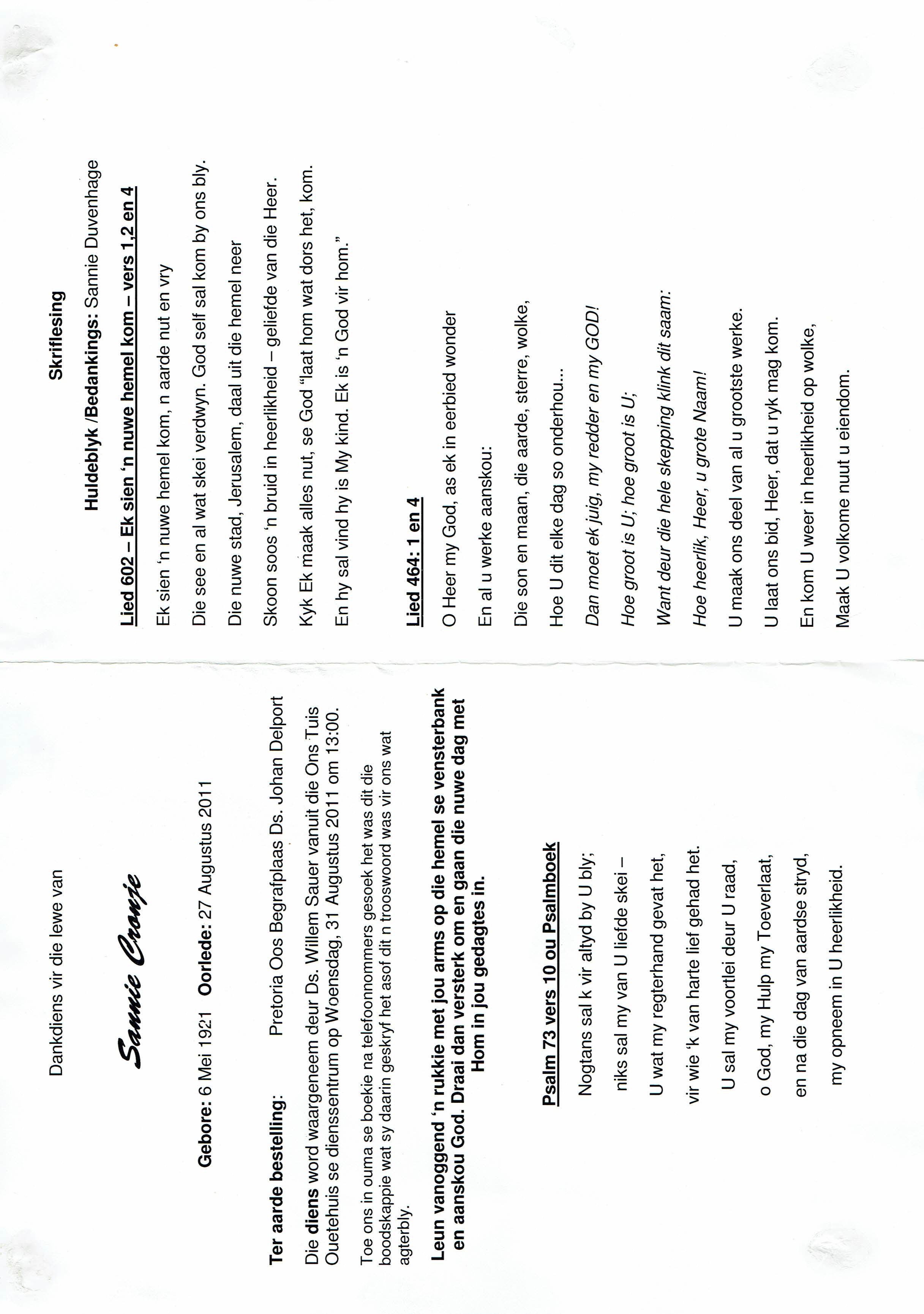Funeral Programs / Begrafnisbriewe