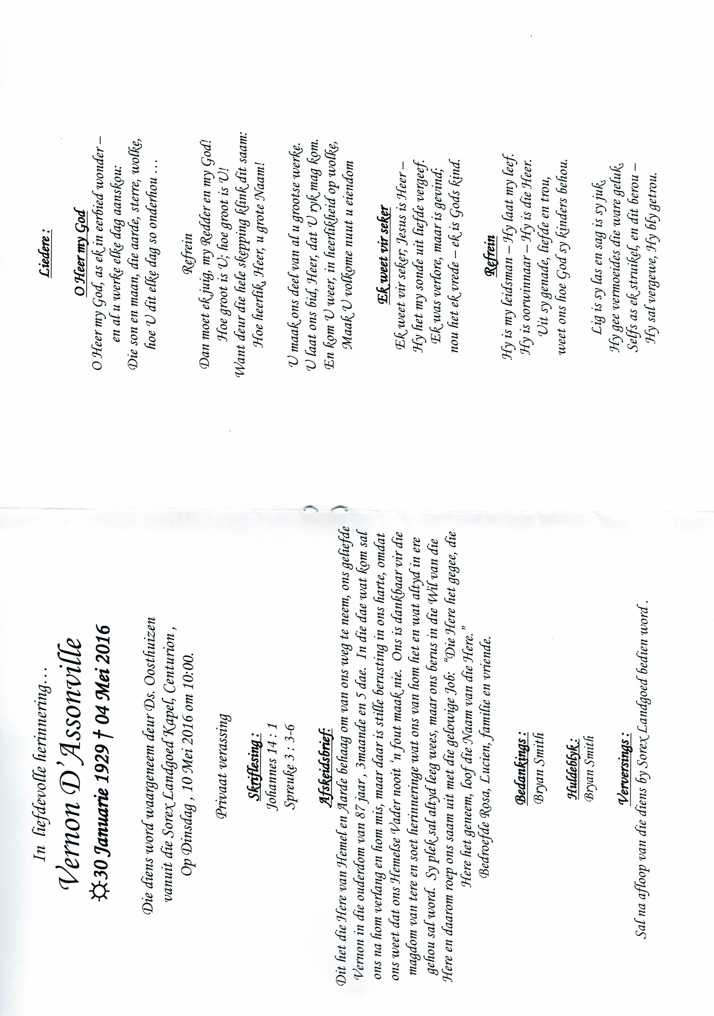 Funeral Programs / Begrafnisbriewe