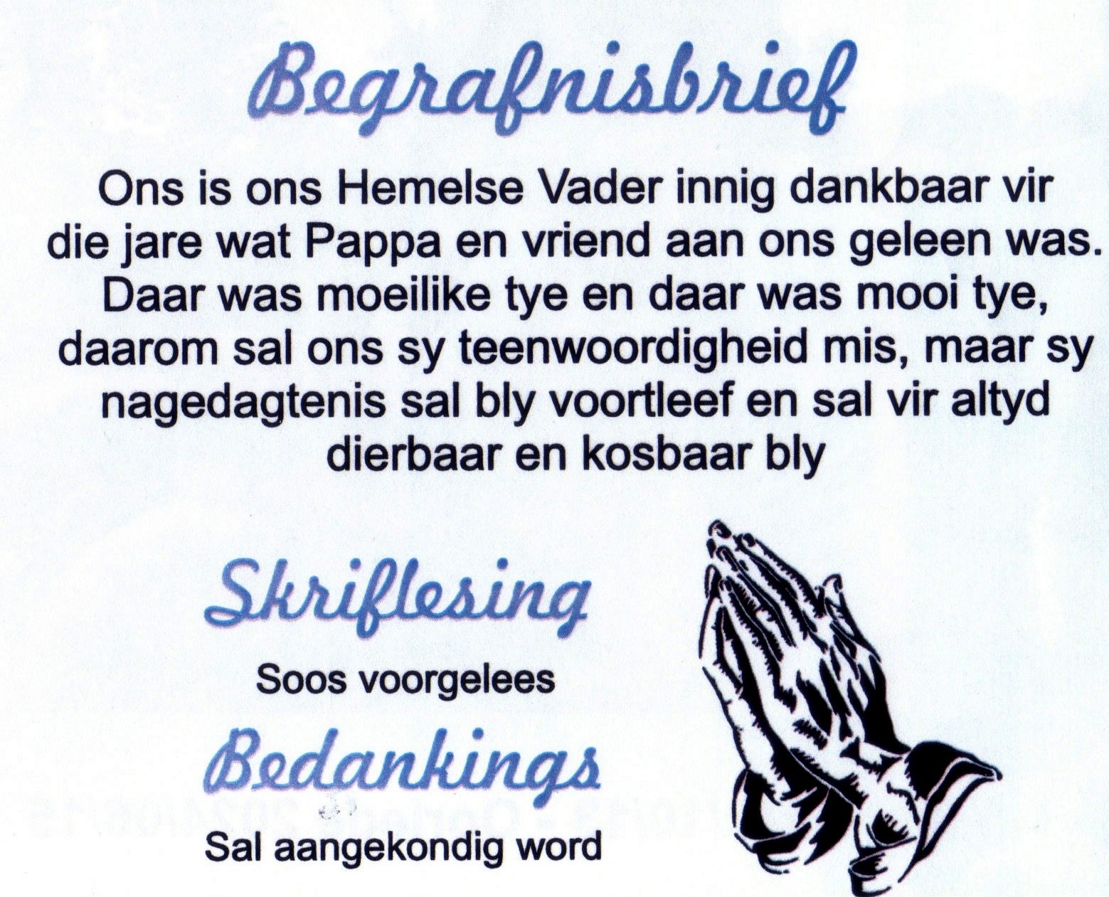 Funeral Programs / Begrafnisbriewe