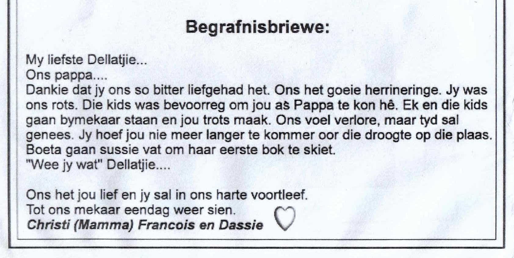 Funeral Programs / Begrafnisbriewe