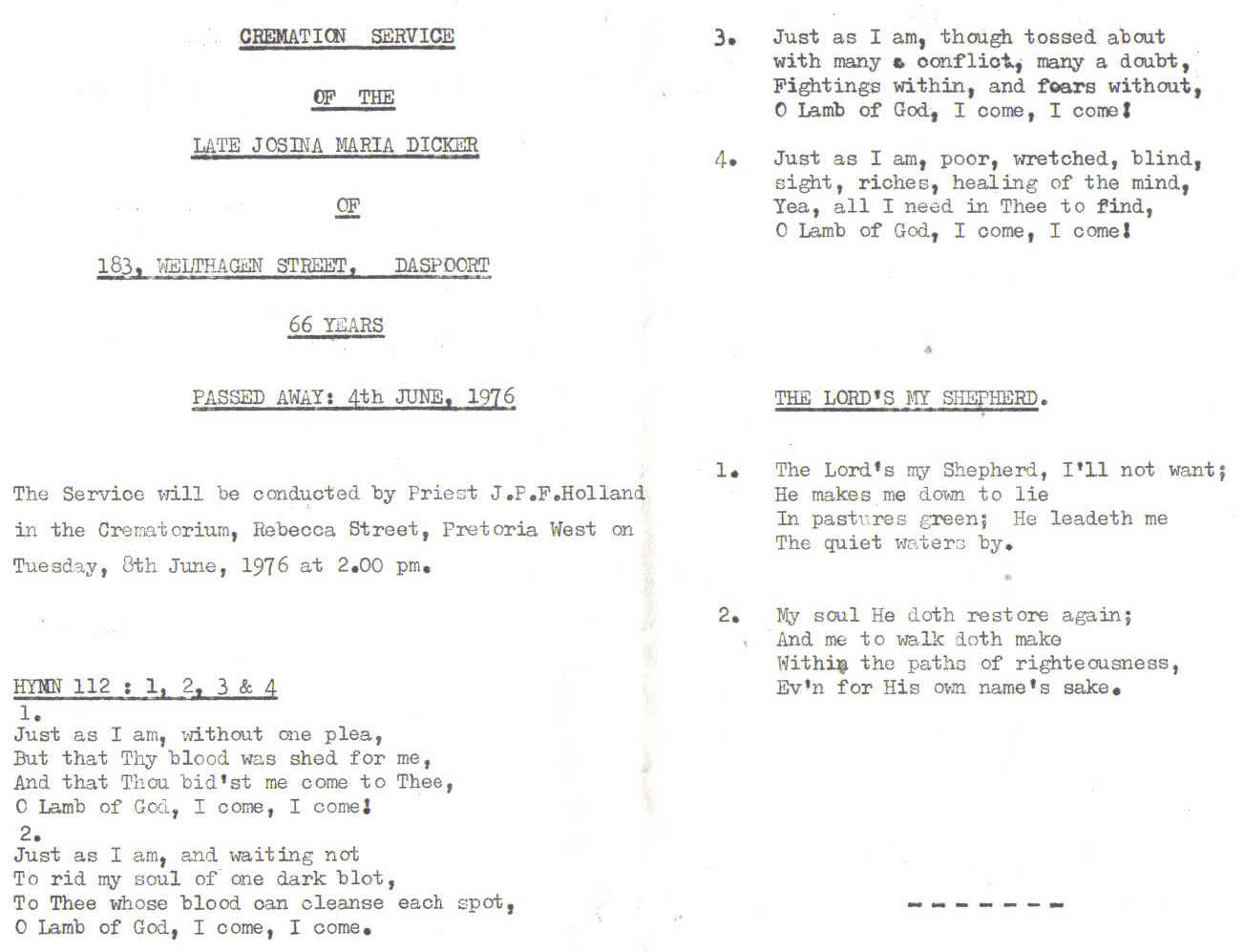 Funeral Programs / Begrafnisbriewe