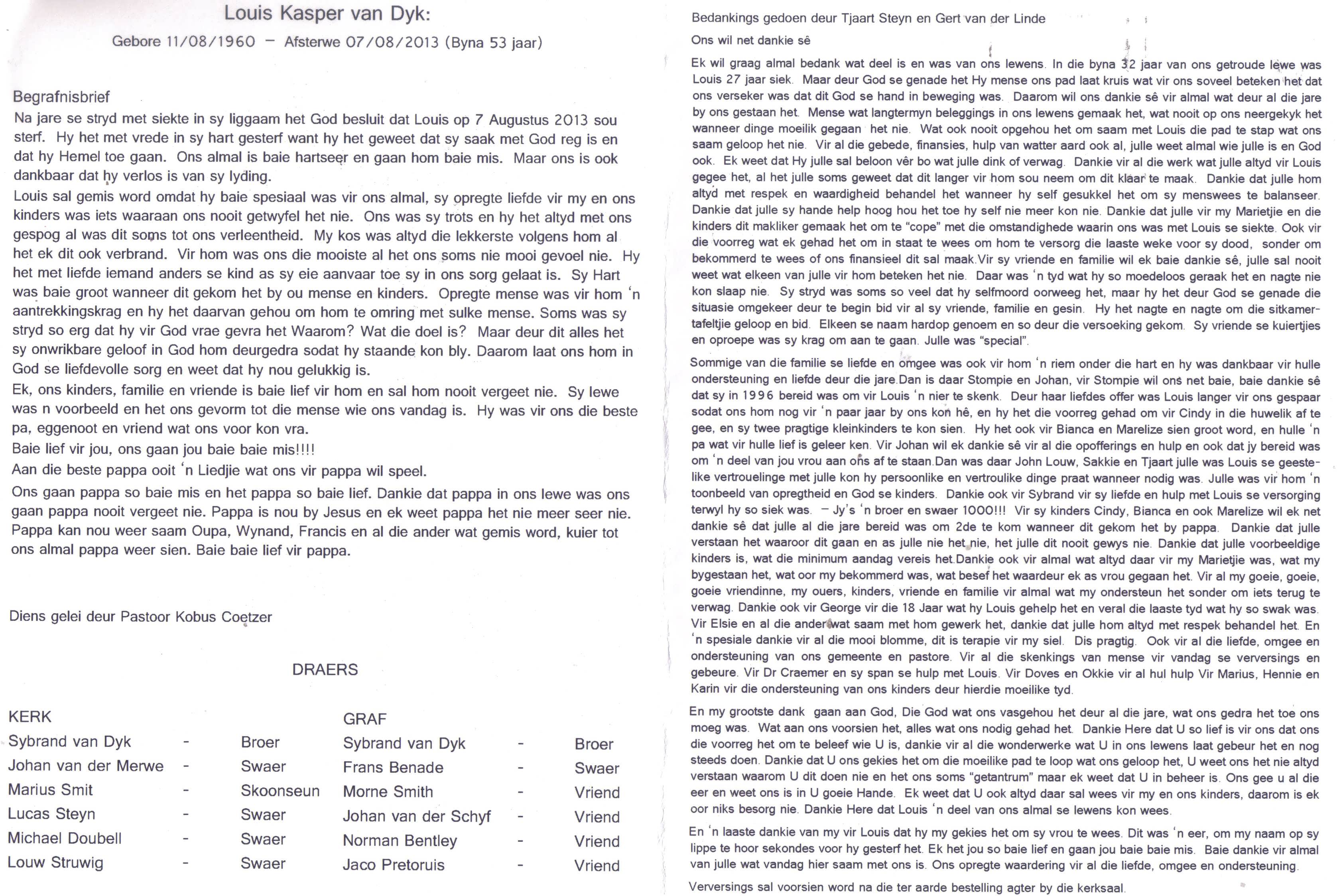 Funeral Programs / Begrafnisbriewe