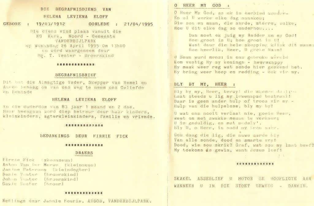 Funeral Programs / Begrafnisbriewe