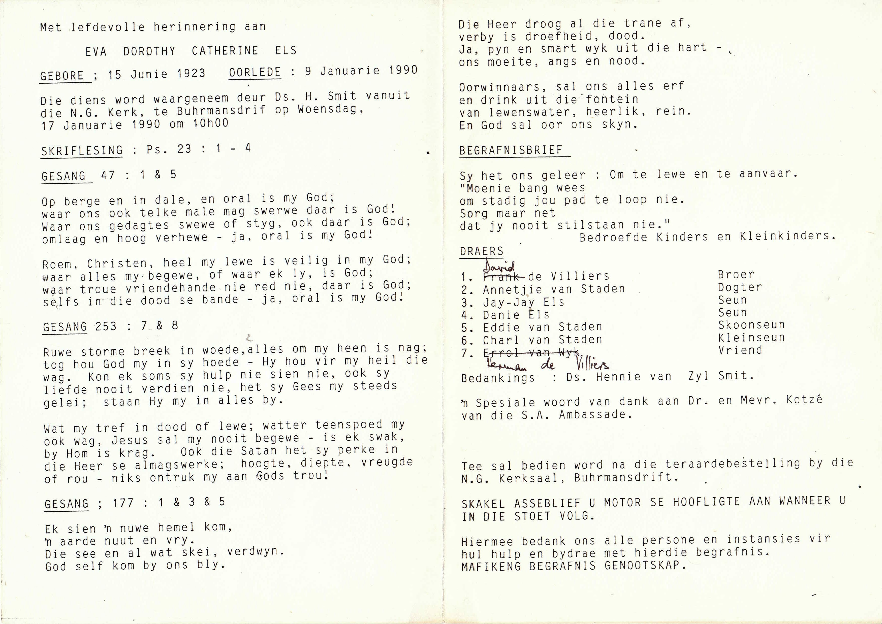 Funeral Programs / Begrafnisbriewe