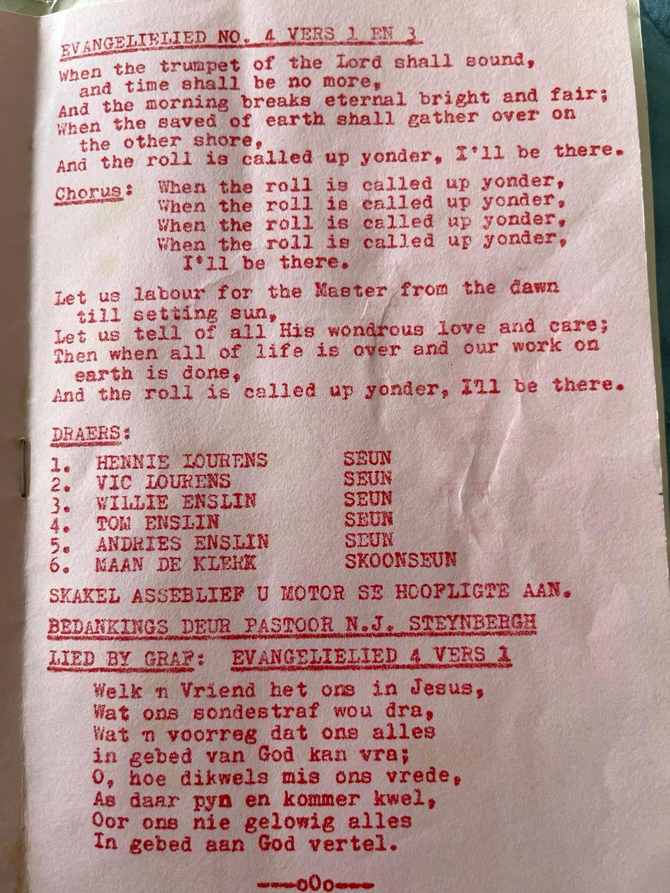 Funeral Programs / Begrafnisbriewe