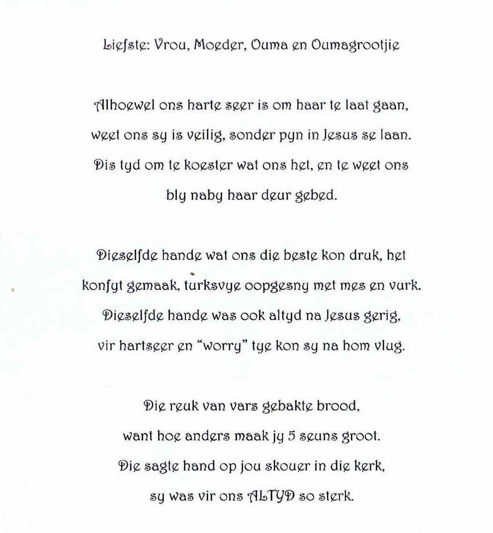 Funeral Programs / Begrafnisbriewe