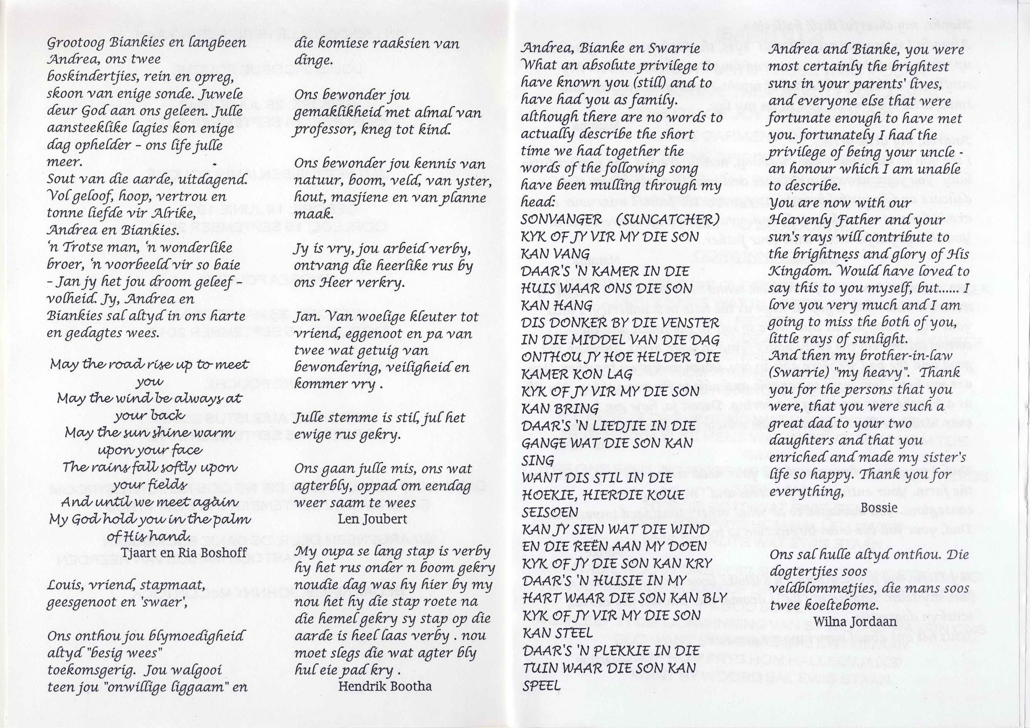 Funeral Programs / Begrafnisbriewe