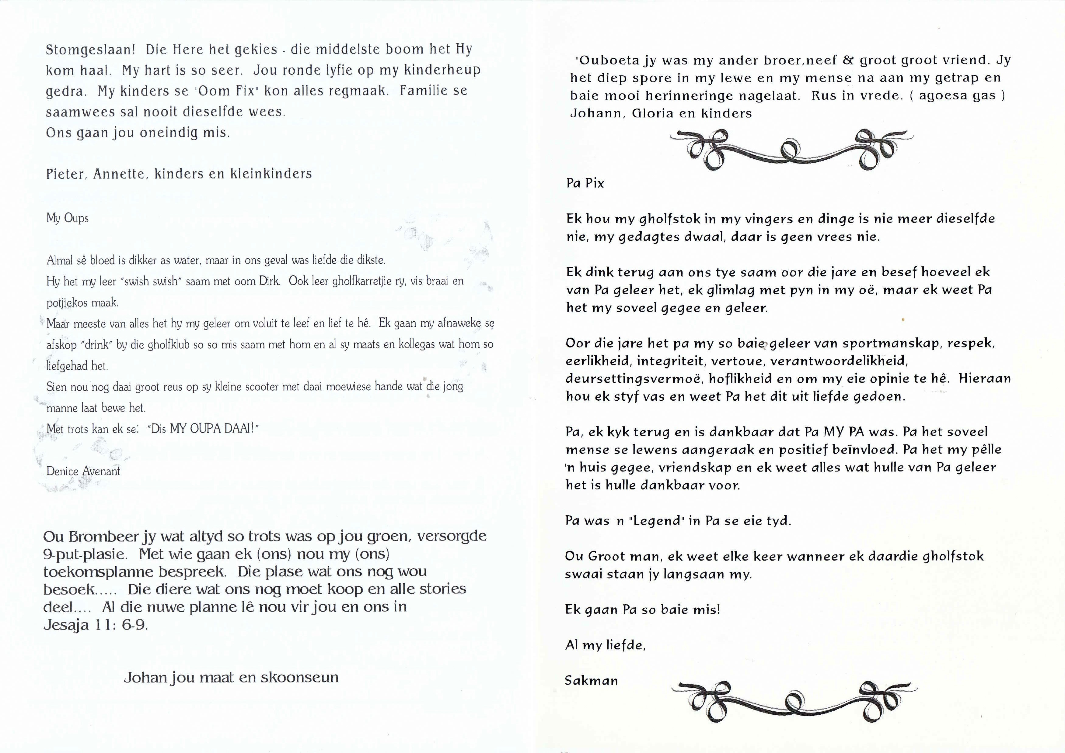 Funeral Programs / Begrafnisbriewe