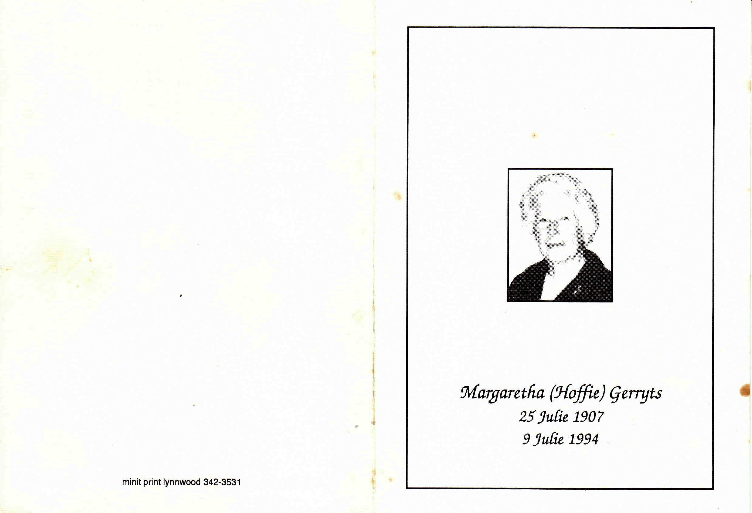 GERRYTS-Margaretha-Johanna-Wendel-Nn-Margaretha.Hoffie-nee-Koornhof-1907-1994-F