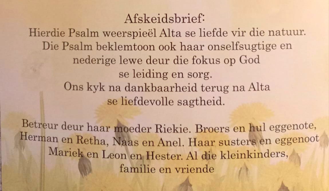 Funeral Programs / Begrafnisbriewe