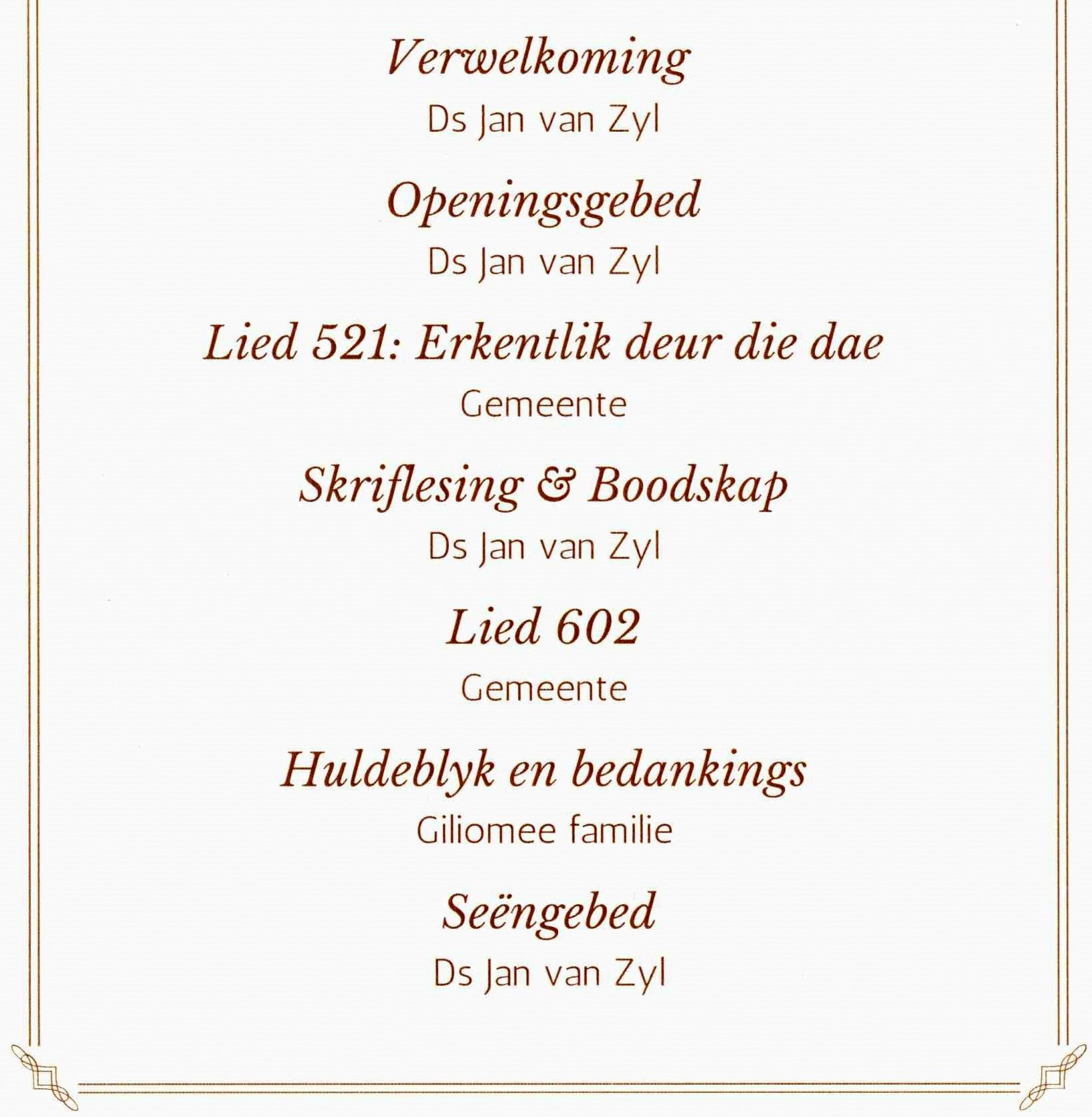 Funeral Programs / Begrafnisbriewe