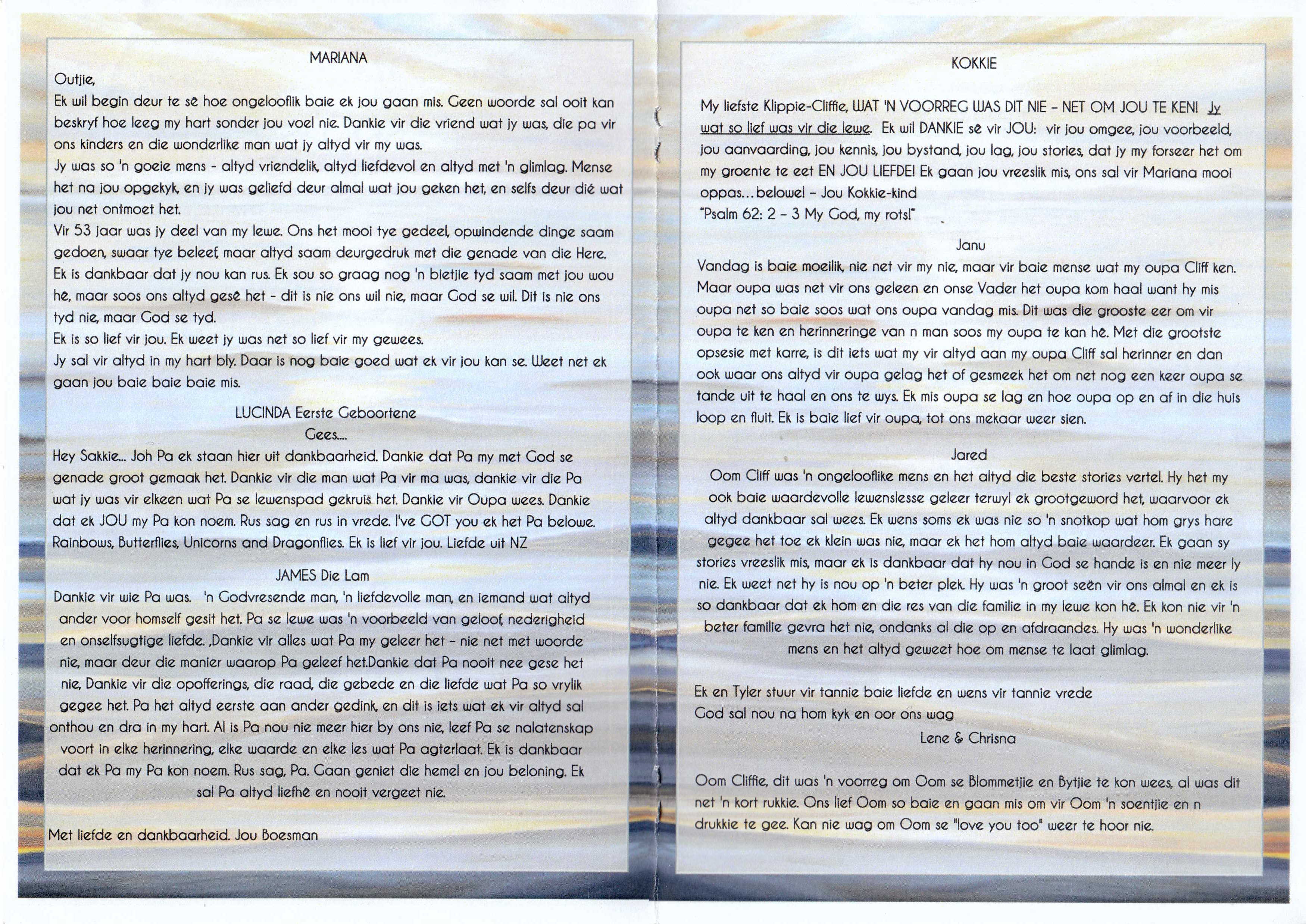 Funeral Programs / Begrafnisbriewe